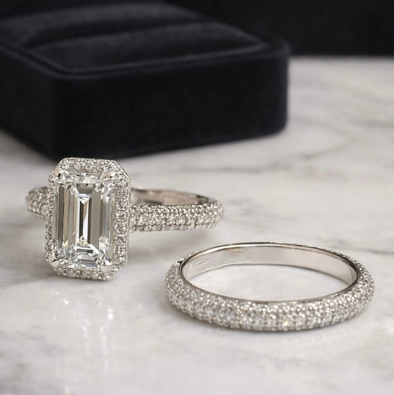 Emerald cut diamond wedding rings